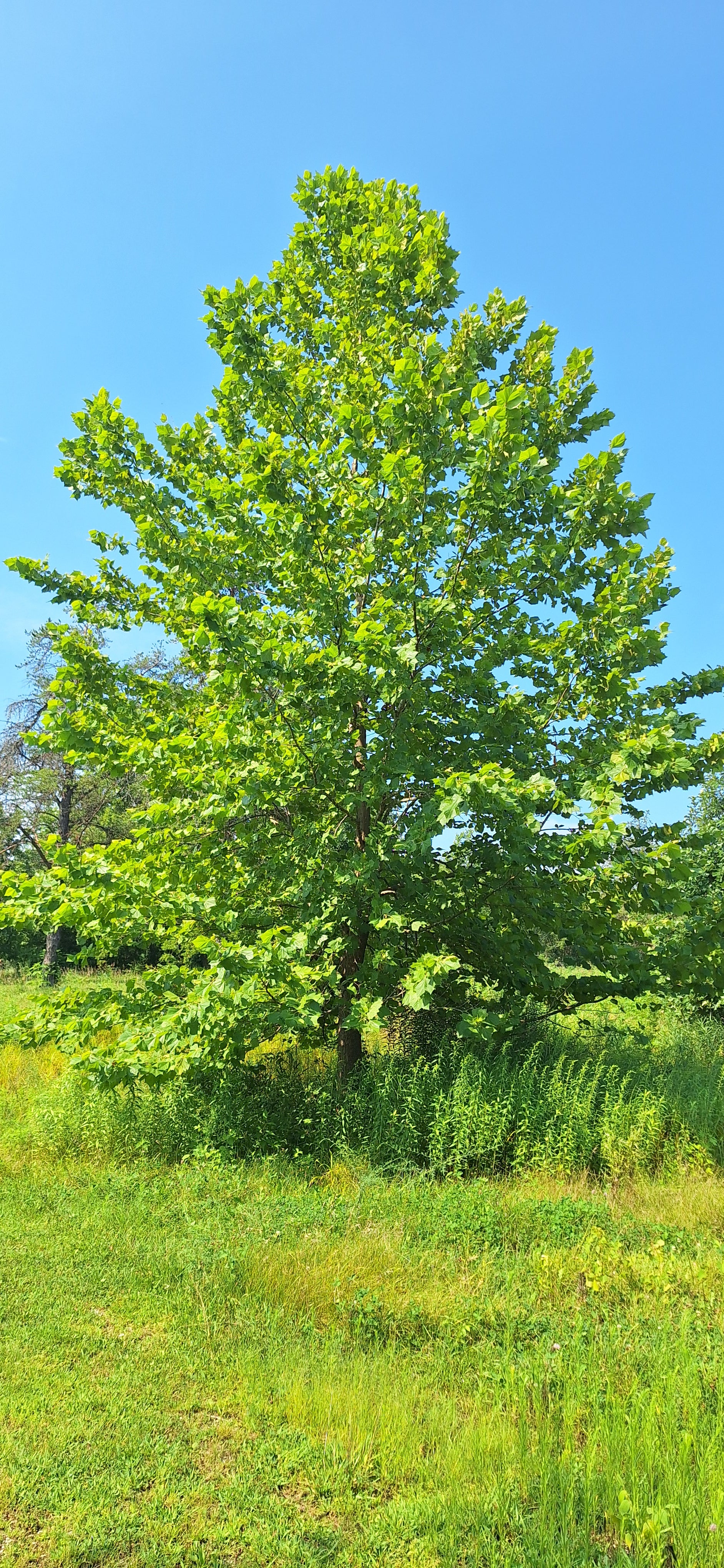 American sycamore is a giant, native shade tree with year-round interest. Exfoliating bark makes this tree easy to identify, even in winter; seed-ball adorn the tree in late winter through early spring and easily degrade into the turf or native floor; magnificent maple-like leaves provide a thick canopy of shade all summer. seeds feed a variety of wildlife, and trees are water tolerant. This is a wonderful addition to a streamside or flood-prone spot.