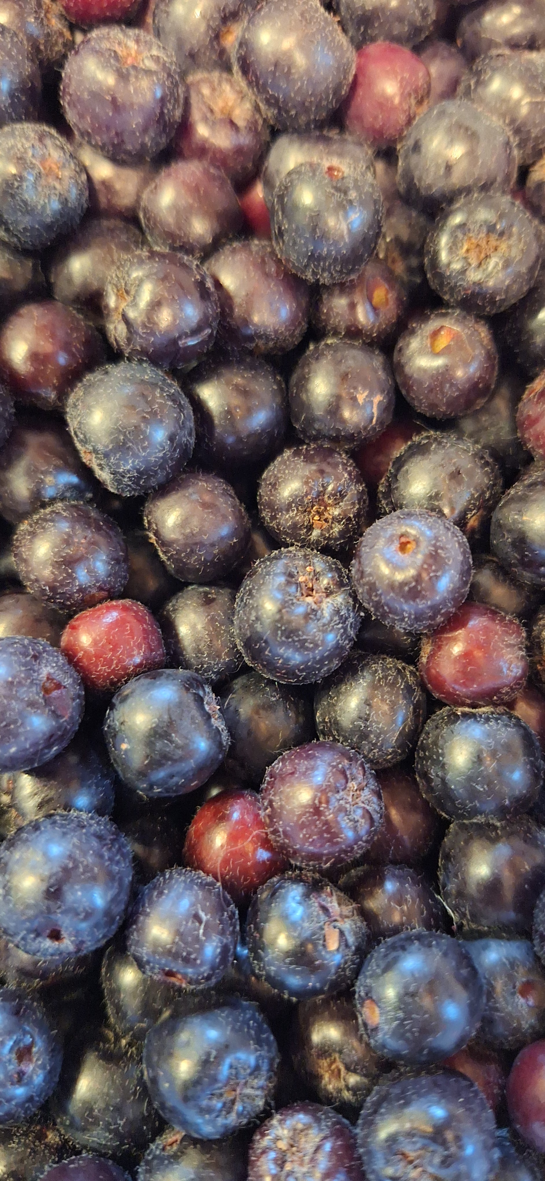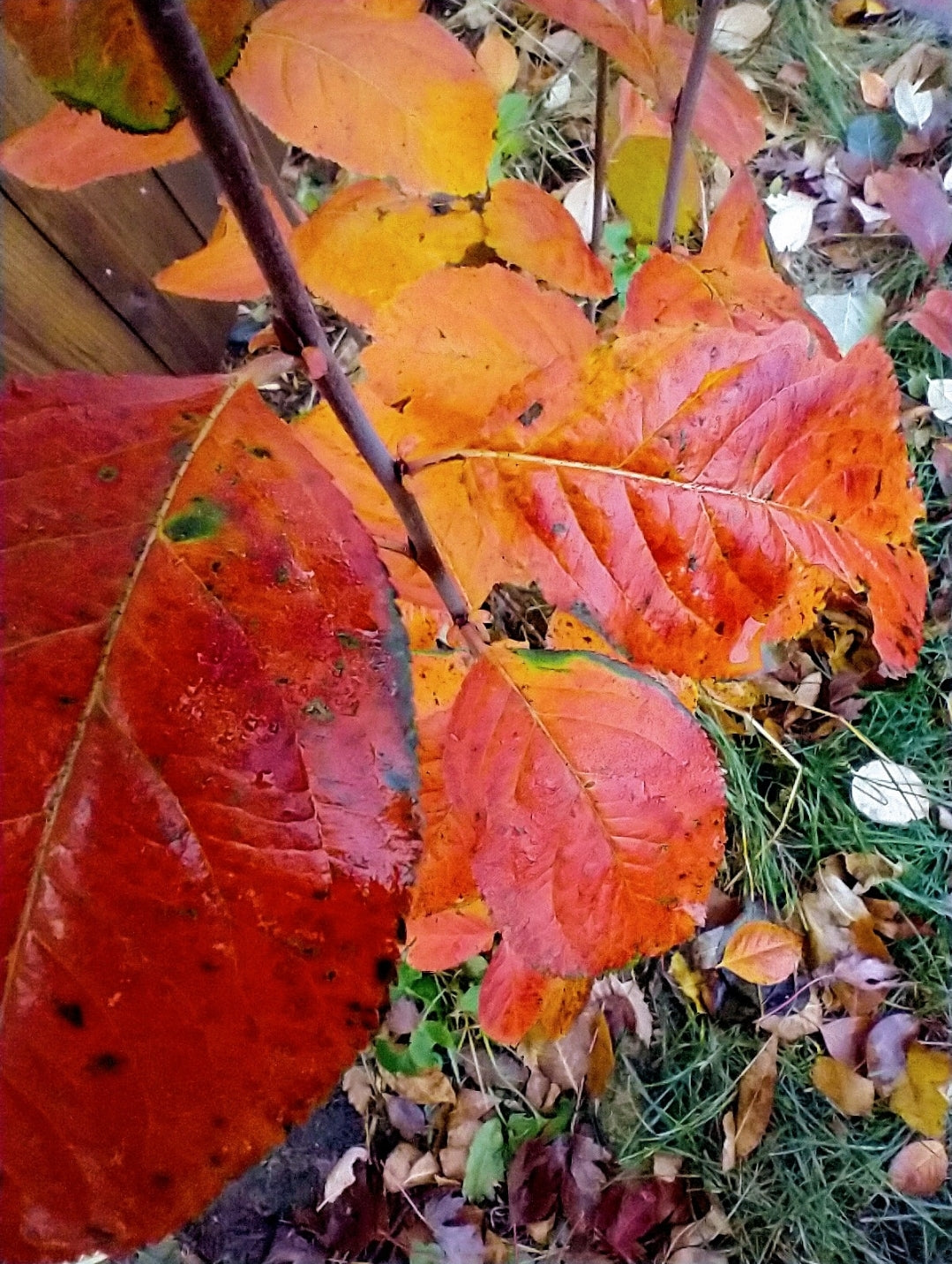 Glossy, deep green foliage dances along strong gray branches in shade or sun. The real show comes in autumn when leaves reveal a vibrant jack-o-lantern orange. Small shrubs up to 6 x 6 feet perform nearly equally in shade or sun. Berries are large and enjoyable to eat fresh, juice or leave to enjoy a chorus of wild birds. white flowers attract small bees.